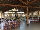 Уютная, просторная зона для пышных торжеств. Беседка оборудована всем необходимым для проведения свадеб, юбилеев и любых других мероприятий и позволяет удобно разместить до 90 человек.